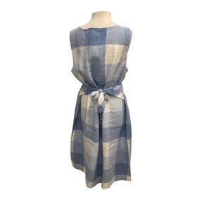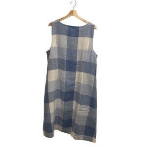 J.Jill Love Linen Midi Dress XL Blue Plaid Sleeveless Tie Back