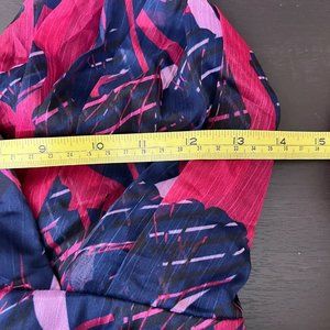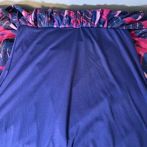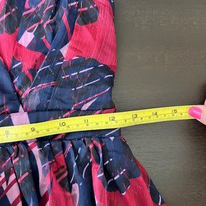 Lulus Exclusive! Take the Lulus Britannia Navy Blue Print Skater Dress to the party and beyond! Adjustable spaghetti straps, that crisscross at back, top a pleated, surplice bodice, made from sheer, navy blue, fuchsia, and black geometric print chiffon (over a knit lining). Banded waist tops a full skater skirt. Hidden back zipper/clasp.