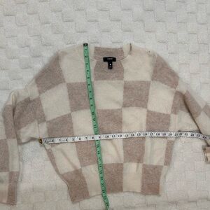 AQUA CASHMERE Neutral Checkered Crew Neck Sweater