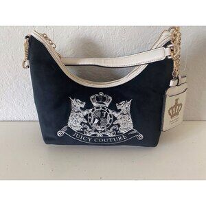 Juicy Couture Classic Scottie Dogs Hobo Bag Liquorice Black White Velvet NEW