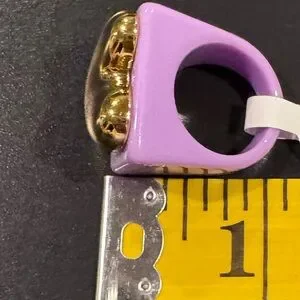 Purple Resin Heart Ring w/ Gold Tone Heart – Size 6 Statement Ring