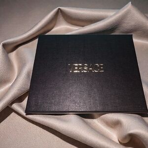 Luxurious Versace Card Holder in taupe. Quilted design with gold-tone medallion. Perfect for a sophisticated touch. Comes with Versace Dustbag And Box
