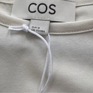 Cos asymmetrical t-shirt in a soft white colour. Loose fitting, scoop neck, and wide sleeves with a long hem that hits the knee on one side. Very fun, but was too big for me (probably fits an 8 well) and was too much of a hassle to send back. It cost me almost $200 after the exchange rate, shipping, and duties/taxes. Size medium with tags. From about 1.5 years ago.
