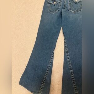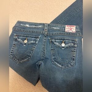 Women’s True Religion low rise jeans size 31, darker blue wash, super cute. Send offers / comments/ questions:) thanks!<3