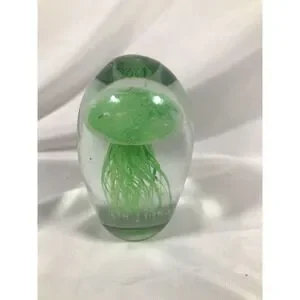 Glow In The Dark Jellyfish Paperweight 5.5 inch 3.2 Pound Art Glass Paperweight