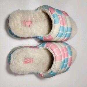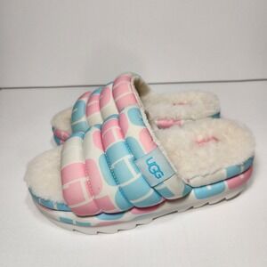 UGG Unisex Chunky Maxi Platform Sheepskin Slide Sandals Pink/Blue Sz W 8.5 /M 7