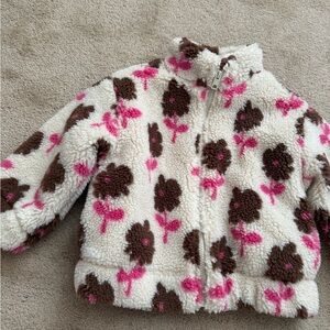 Cozy fleece jacket by Zara. Features cream and pink colors. Soft and warm material.