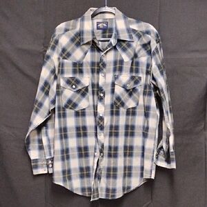 Men's Blue and White Plaid Button Down Shirt