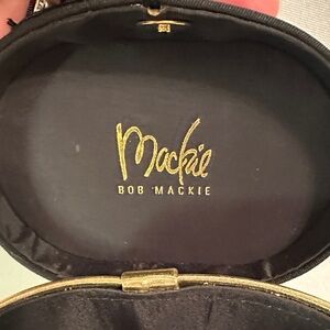 Elevate your evening look with this stunning "Wearable Art" piece from legendary designer Bob Mackie. This rare mini bag features a sleek matte black body contrasted by brilliant metallic gold panels and the iconic Bob Mackie signature star logo clasp.