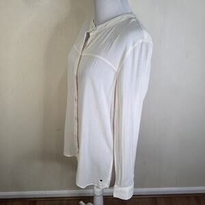 Eddie Bauer Women's Button. Down Rayon Cream Blouse Shirt Size Medium EUC