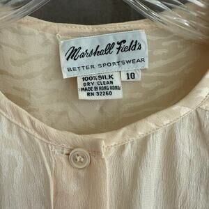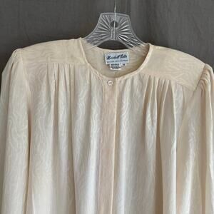 Vintage Marshall Field's Silk Blouse Cream with Jacquard Pattern 70s/80s Sz 10