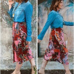 Anthropologie Womens Brina Faux Wrap Butterfly Satin Skirt Size 6 Pink SP EXC.
