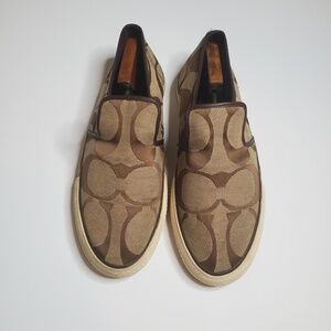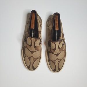 Coach Men’s Brown Signature C Slip-On Loafers/Sneakers - Canvas & Leather