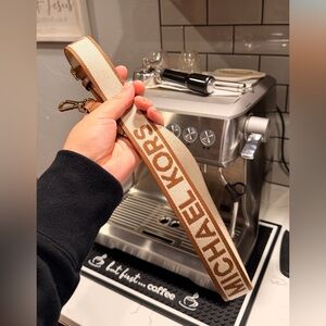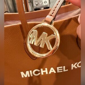 Pebbled leather, gold-tone hardware, adjustable crossbody strap, MK hang tag, zip pocket on interior