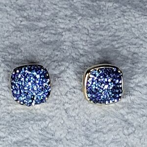 * These earrings are a vibrant blue or navy blue color with shiny steel posts with post-back closures.