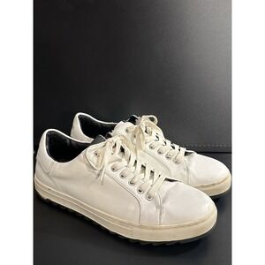 The Karl Lagerfeld Lace Up Sneaker Shoes in white, size 11, are a stylish and comfortable option for women looking for casual footwear. Featuring the iconic Karl Lagerfeld Cate Pins model, these sneakers are designed with a lace-up closure for easy wear. The white color adds a classic touch to the overall design, making them versatile for various outfits and occasions. Perfect for those who appreciate trendy and quality footwear, these sneakers are a must-have addition to any fashion-forward woman's collection. Used condition some stains seen on pics