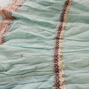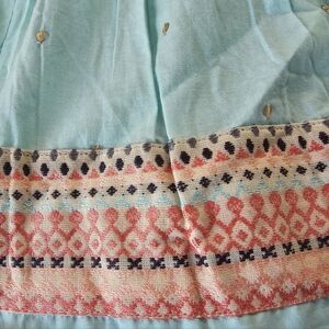 Stylish wide leg pants with tiered design. Features intricate pink and brown detailing. Perfect for a chic look.