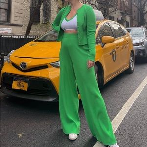 Vibrant green cardigan. Stylish and comfortable. Perfect for layering.