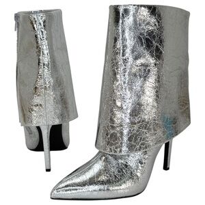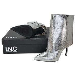 INC Sabeel Silver Patent Leather Cuff Heeled Womens Boots Size 8.5M