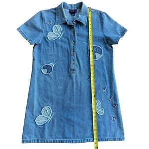 Blue J Denim Dress Womens Size L Short Sleeve Applique Butterflies Vintage