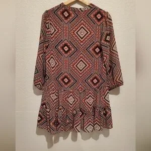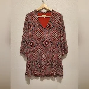 💚5/$25 Mellōday Red Boho Print Baby Doll Mini Dress Size Medium