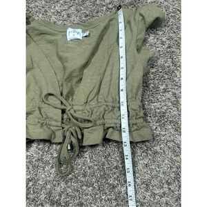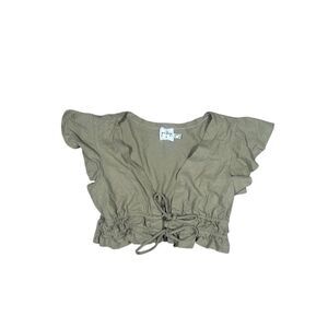 princess polly jamison reid crop top khaki green tie front plunge neck ruffle 8
