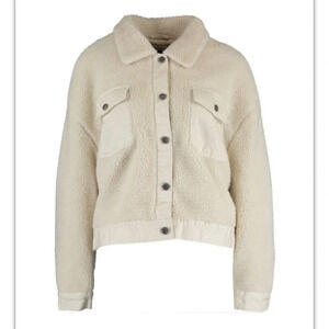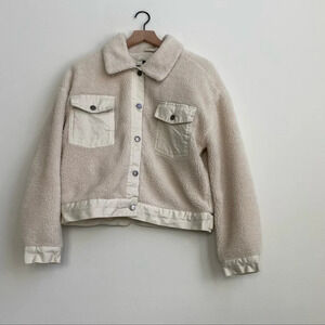 NWT Womens Stoosh Denim Faux Fur Sherpa Trucker Jacket Cream shearling small