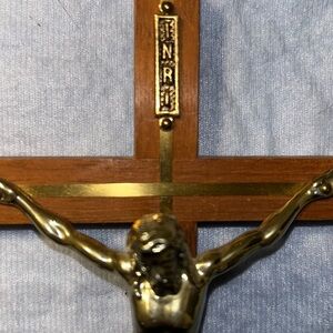 Vintage Wooden and Brass Crucifix with INRI Plaque