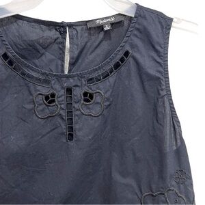 Madewell Black/Navy Embroidered Peplum Tank Top Size M