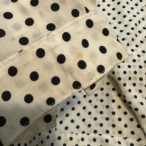 Chic button-down with polka dots. Ideal for casual outings. Gently worn and in great condition. One small spot as shown on the sleeve.