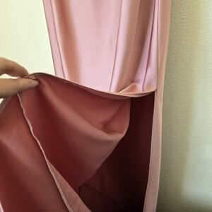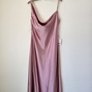NWT Women Large Bridesmaid Rose Gold One Shoulder Maxi Slip Cocktail Slit Dress