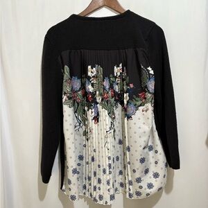Chico's Black & Floral Knit Cotton Pleated Sweater Blouse XL P