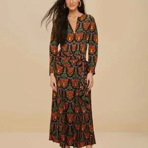 Vibrant long sleeve dress with bold patterns. Features a flattering fit and eye-catching design. Perfect for any occasion.