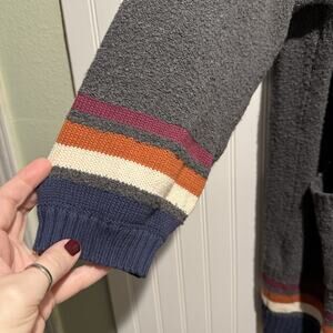 Torrid Gray Hooded Cardigan Sweater Colorful Striped Cuffs Plus Size 2X