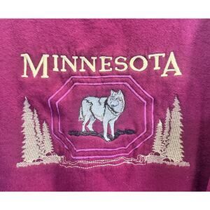 Vintage 90s Minnesota Embroidered Wolf Crewneck Maroon Heavy Fleece Shirt Sz XL