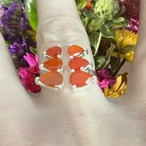 These natural red Jasper pear cut stones are set in solid 925 sterling silver. This ring is adjustable (by you) size listed is current without adjustment.