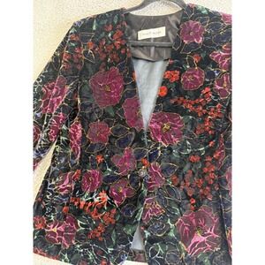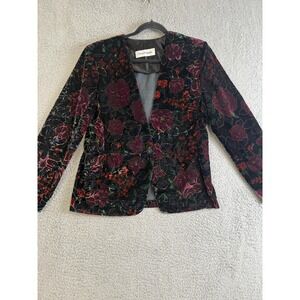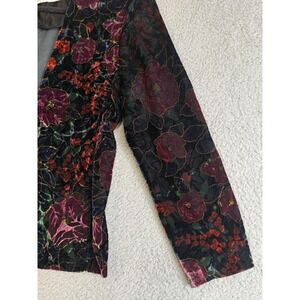 Vintage Norton McNaughton Jacket Womens Medium Black Floral Velvet Blazer 90s