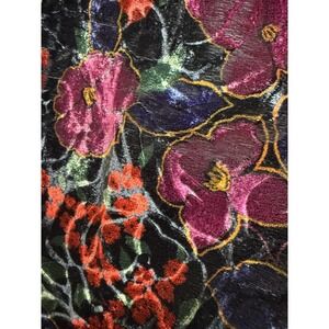 Luxurious plush black velvet with rich multicolor floral pattern in red, purple, pink, and green