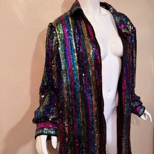 Vibrant multicolor sequin jacket/shirt with striped pattern. Perfect for making a statement.