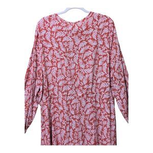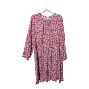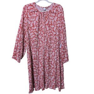NWT Old Navy Waist-Defined Keyhole Dress rust white leaf print elastic waist XXL