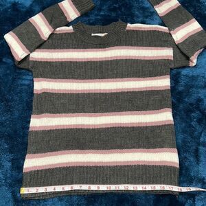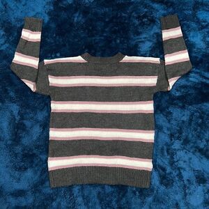 18. Pink Rose Knit Crewneck Sweater Size M purple gray white stripe Women Junior