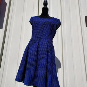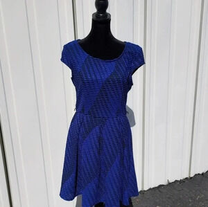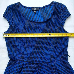 Iz Byer Blue and Black Mini Dress Size Medium. Pre-Owned In Great Condition. 98% Polyester and 2% Spandex. No Belt. See Pictures for exact Dress and Measurements!