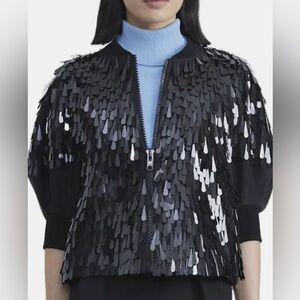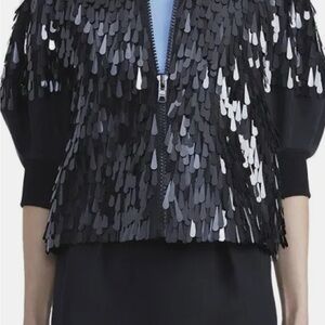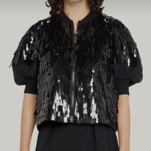 • PAILLETTE LANTERN SLEEVE WOOL & SILK-BLEND JACKET IN BLACK