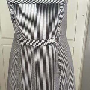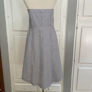 Blue/white Seeesucker Strapless Dress From Harold's Size 12 Women's Fully Lined