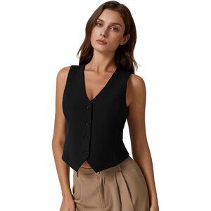 Women's Black V Neck Vest Top Sleeveless Button Down Fully Lined Solid Crop Tops