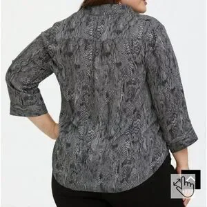 Torrid Georgette Snake Animal Print Button-Down Blouse 3/4 Roll Sleeve Sz 4