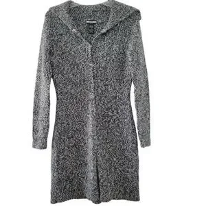 GUESS Jeans Women’s Gray Tweed Ribbed Knit Wool Blend Cardigan Sweater Tunic
