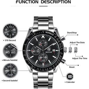 UNIQUE ELEGANT DESIGN:Stylish and classic design watch for men. 45MM beautiful and exquisite big face with three functional subdials and date display, tachymeter numerals on the bezel, with a fashion silicone strap, Quality quartz analog movement and battery, provide precise time and perfectly match any of your outfits, Benyar analog wrist watch embodies the pursuit of fashion and quality that redefines time!