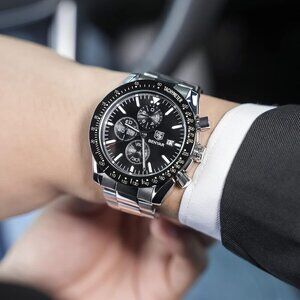 BY BENYAR Men's Silver Analog Quartz Chronograph Watch 30M Waterproof Luminous