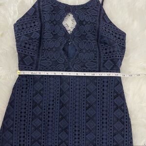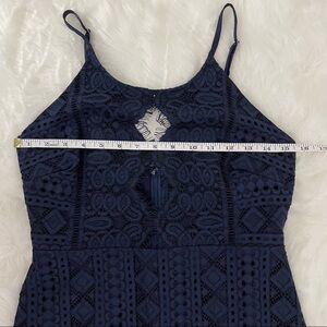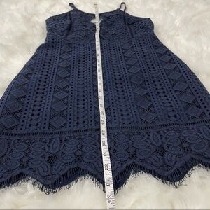 Storia Navy Blue Lace Mini Dress w/ Diamond Cutouts & Eyelash Trim - Size M